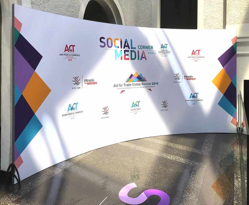 8ft x 8ft (3m x 3m) backdrop, expertly printed and mounted on a stable aluminium stand for a professional display.